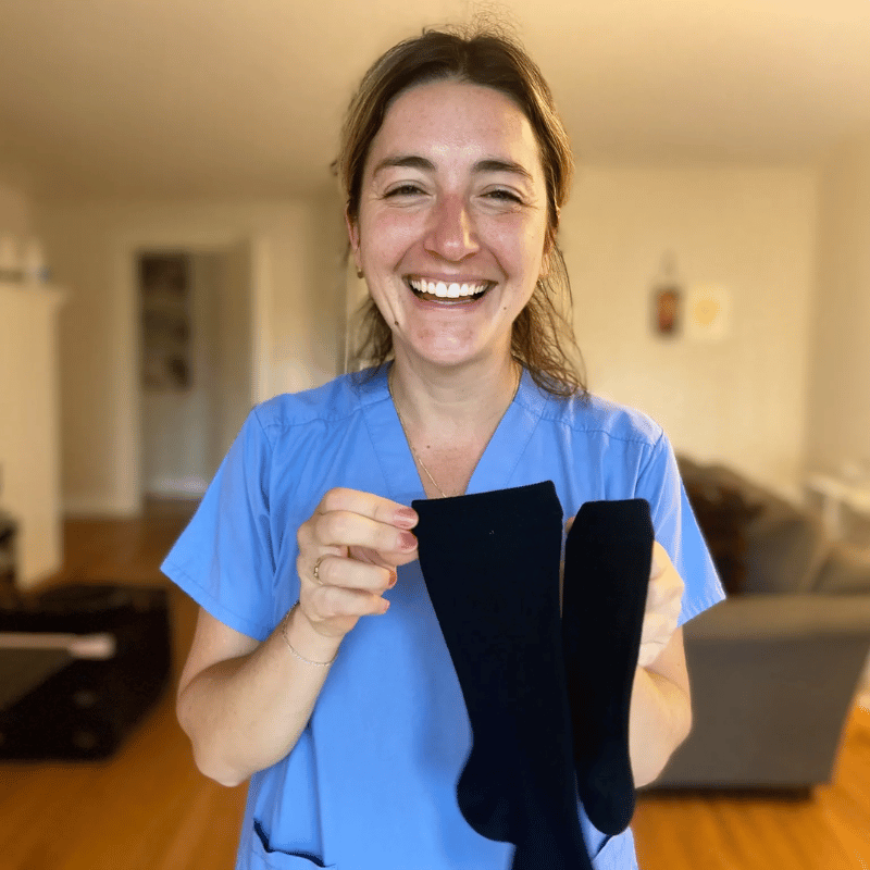 Nurses, CNAs, techs, and any healthcare worker on their feet 8–16 hours per shift. If you deal with swelling, aching calves, or early visible veins — these are for you.