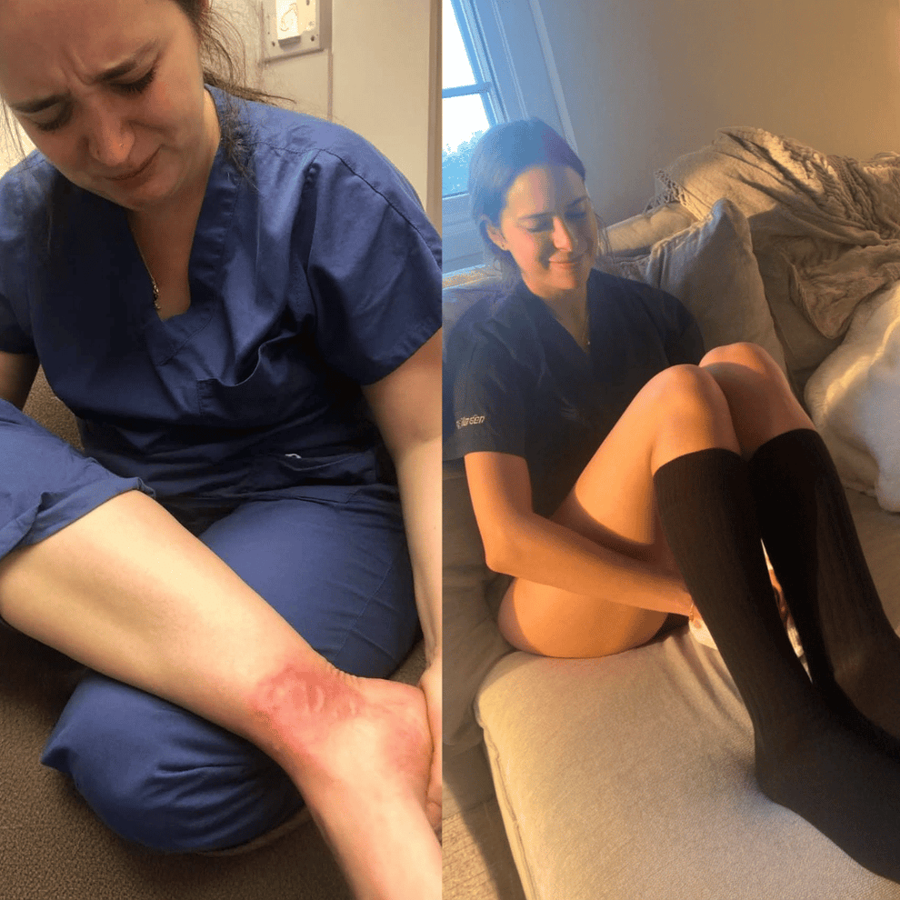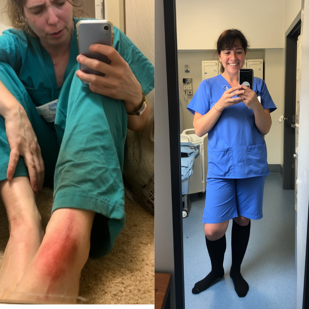 Standing 10–16 hours on hospital floors causes fluid to pool in your ankles — the redness, heaviness, and throbbing you feel at the end of every shift isn’t something you’re supposed to “push through.”
